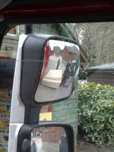 koles rozladowywal mi takie duze paczki plyty wiorowej takim malutkim wozkiem widlowym. od razu zauwazyl, ze jak tylko probuje to podniesc, to podnosza sie........ jego tylne kolka. zawolal wiec kilku kolegow (pieciu dokladnie) zeby robili mu za 'counter balance'. pierwszej paczce dali rade, kiwal sie ten wozeczek na swoich malutkich kolkach, ale dali rade. za druga paczke zabrali sie juz pewniej, ale niestety 'operator sprzetu' nie wsunal widelek do konca pod paczke i zamiast ja podniesc nad naczepa, zsunal ja najpierw. te kilka centymetrow zrobilo wieksza roznice niz sie spodziewal, i w pewnym momencie zamiast przed siebie patrzyl w dol, a koledzy - przeciwwagi poodpadali jak ulegalki. zdjecia robilem w lusterku bo nie jestem az tak odwazny :-)