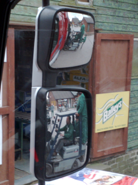 angole wlasnie. zaobserwowalem taka prawidlowosc: im wieksza firma - tym wieksza dbalosc o przepisy bhp. jesli mam wysiasc z kabiny w takich miejscach jak cukrownie tate & lyle, sklady tarmac czy sklady portowe musze miec buty, kamizelke/kurtke, kask i okulary ochronne. niedlugo pewnie beda wymagali odblaskowego ochraniacza na jaja. jesli przyjezdzam do sredniej wielkosci firmy to biegam sobie w samej kamizelce , i nikomu nie przyjdzie do glowy aby czepic sie nawet moich rozdeptanych adidaskow. male firmy to juz calkiem normalny swiat. no i teraz mozna zobaczyc do czego prowadzi brak nadzoru nad pracownikami. robia takie glupie rzeczy jak powyzej. proponowalem kolesiowi zeby na dachu tego widlaka polozyl drugim takim widlakiem palete cegiel zeby go dociazyc, facet zaczal sie nad tym powaznie zastanawiac...... a ja sobie tylko robie zdjecia :-0