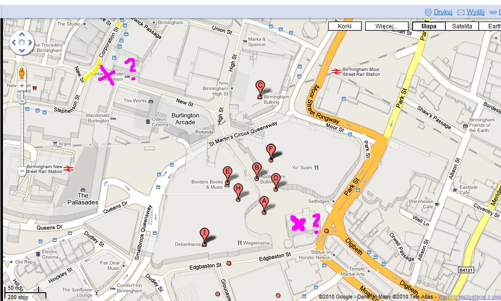 co do miejsca to ja tez sie malo orientuje zazwyczaj wysiadam na new street z 6tki prawie kolo PRIMARKA :)