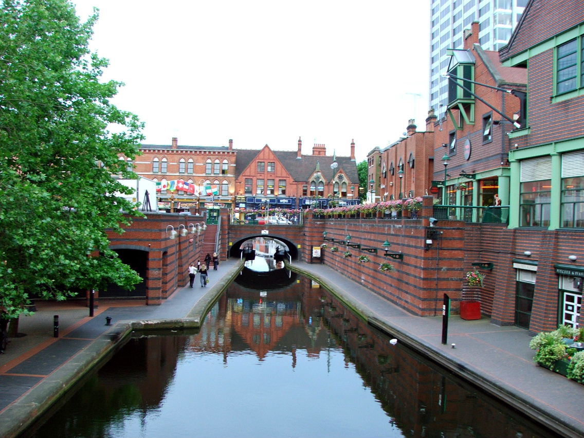 Co niektórzy porównają przemysłowe Birmingham do romantycznej Wenecji ze względu na istniejący tu system kanałów. Jest to zapewne nie lada atrakcja w samym centrum miasta. Można zjeść romantyczną kolacje w jednym z przy kanałowych pubów, udać się w krótki rejs barką lub po prostu przechadzać się chodnikami wzdłuż kanału.